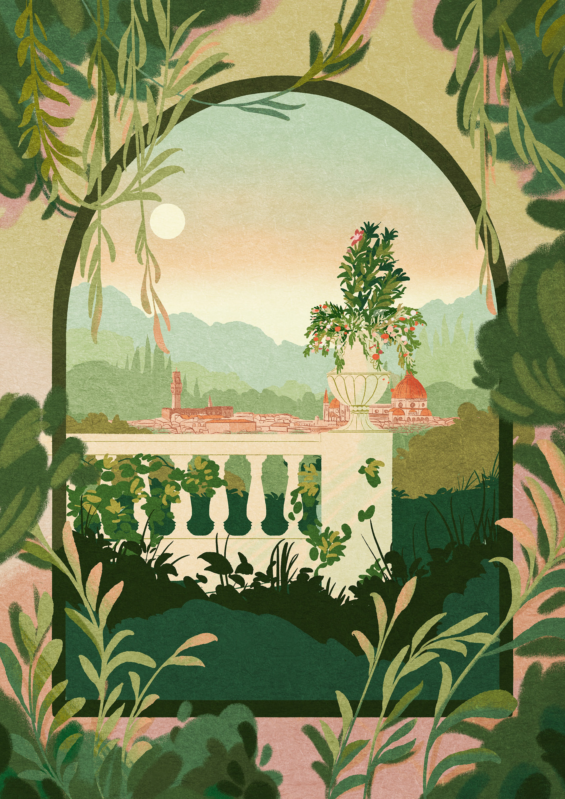 Illustration commission for mural for the Belmond Group, Villa San Michelle property